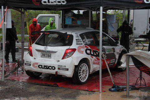 SSS後のサービスが終わり、ラリーカーが再びSSに向かいます。