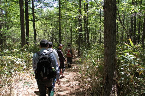 この階段をのぼってからまだ山道をしばらく歩くのですが、階段を上がった時点でかるく息が上がる私ともとじ氏とみその氏。