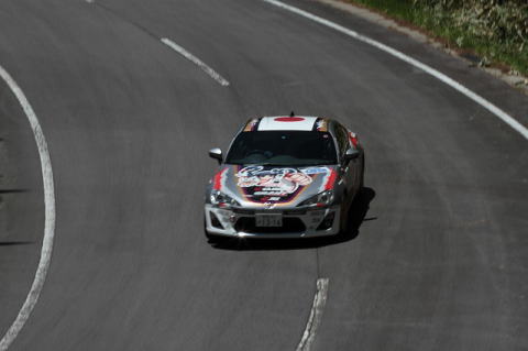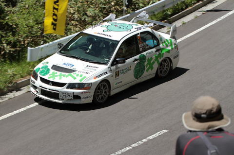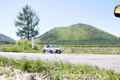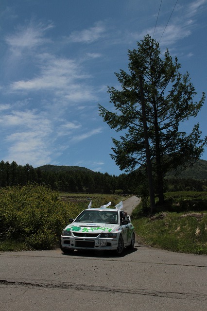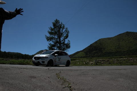 みその氏のガンバリで、炭山/保井組の車が綺麗な青空の下、左から右に受け流されるところをジャストタイミングで見ることが出来ました。