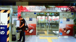 千歳空港の出口には、『ようこそ!スイーツ王国北海道へ』と書かれたゲートが。 はい、間違いなく私の求めていたものがココにございます!