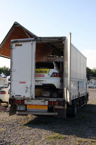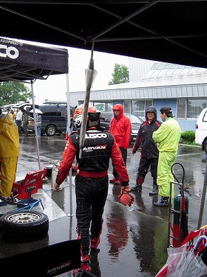 朝起きると雨。(-_-;) でも、サービスパークに炭山選手が居るかもしれないので素直に出かける。(^-^) 途中で車検場の下見。