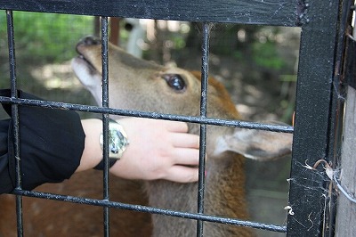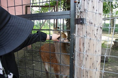 シカがが「なでてくれ!」と寄ってきます。 はいはい、痒いところはございませんか〜?