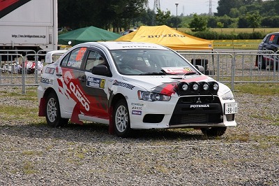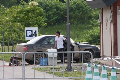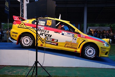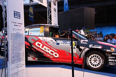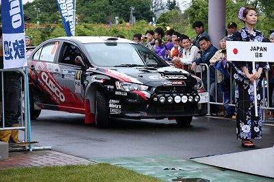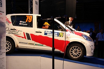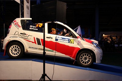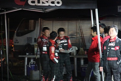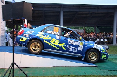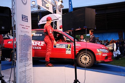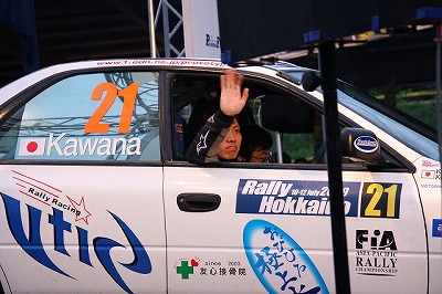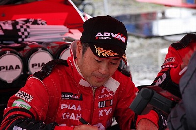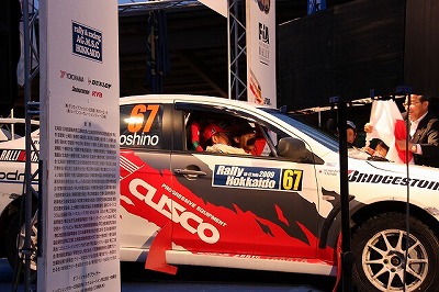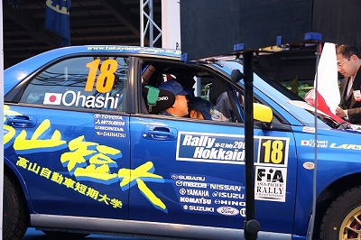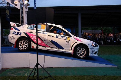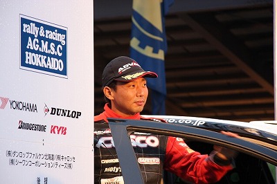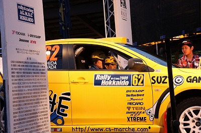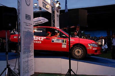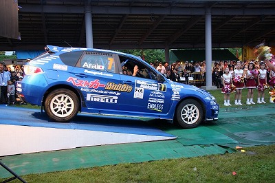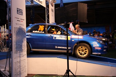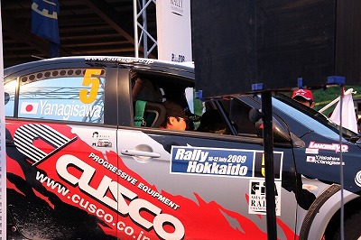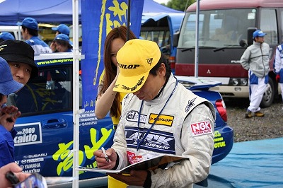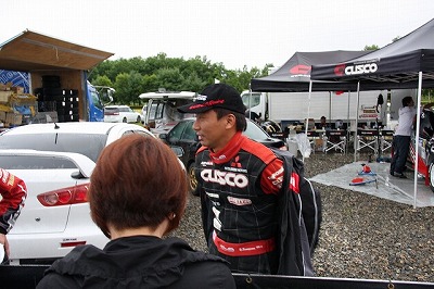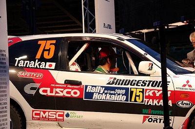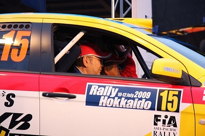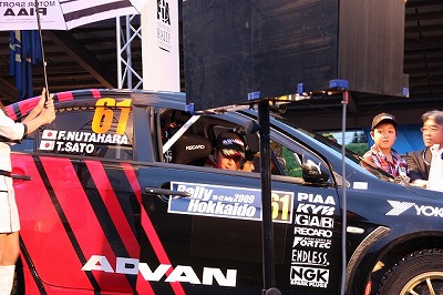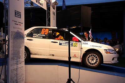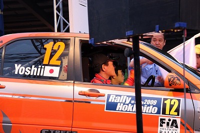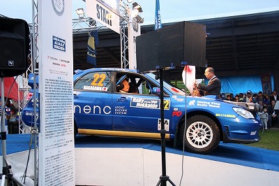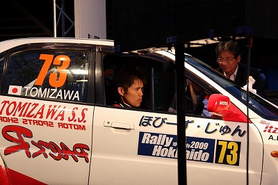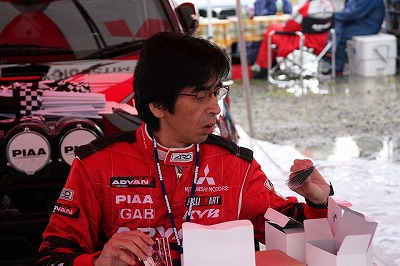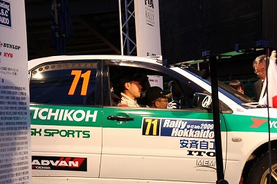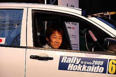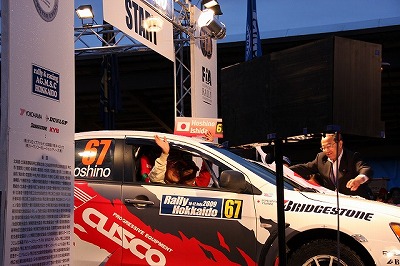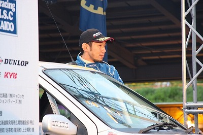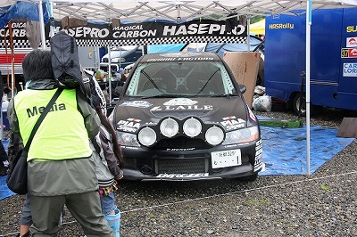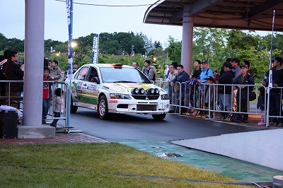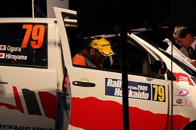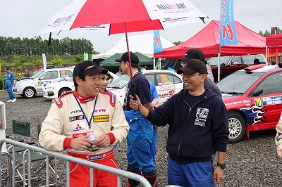 大嶋選手の車両が到着しました。 星野選手の車両も来ました。コドライバーの石田選手が居ます。