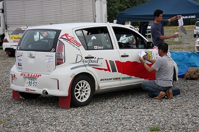 KPさんも来ているようです。今にこの車もラリーカーに? チームカマキョウ、通称チーカマです。