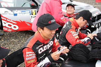 サービスパークに戻ると炭山選手が洗車中でした。 あ、洗われたい・・・。