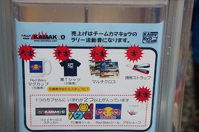 ココはラリーの管制塔てきな役割をしているところですが、グッズなどの販売もしています。 ラリー会場のどこのショップより種類が多いんですよ。