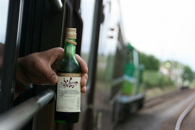 で、旅にはビールがつきものですよね〜1両に客5人くらいなので、ボックスシート貸しきりです。