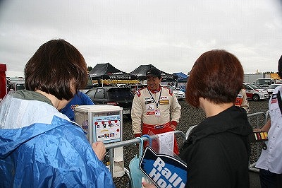 ハンカチを持たないでトイレから出てきた子供のように、レーシングスーツで手を拭き拭きして書いてもらいました。