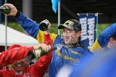 ポディウムではいつも楽しいシャンパンファイト。ヤナ様も壇上に。おめでとうございました。