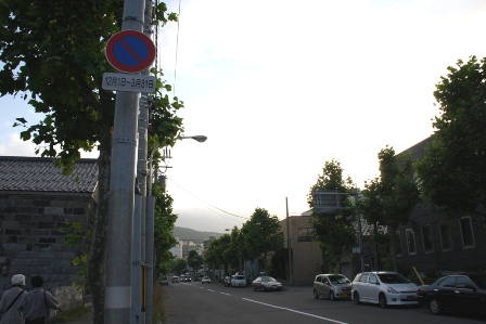 電灯が灯り情緒がでてきた。 北海道では珍しくない?雪のある期間限定の駐車禁止。