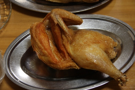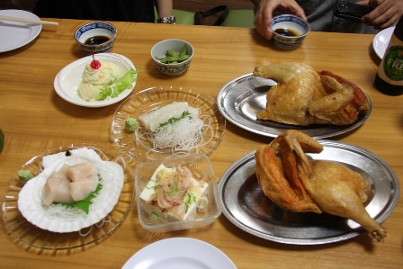 夕食は「なると」というお店。 ここの名物「若鶏半身揚げ」。