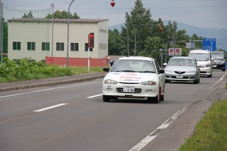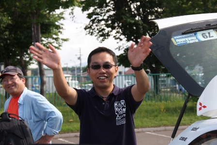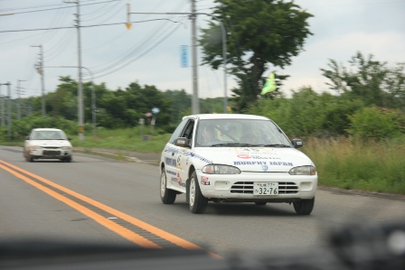 トップの何台かが出て行くと、こちらもリエゾン観戦へ移動。先ず道の駅ニセコでSS13ラベンダーに向かうラリーカーを応援する。