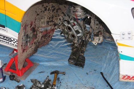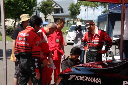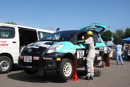 No.17村瀬選手でドライブシャフトを破損、サービスが夜遅くまで作業して翌日のスーパーラリーでの出場に間に合わせた。