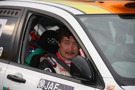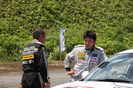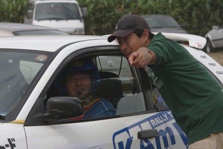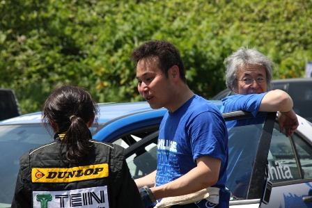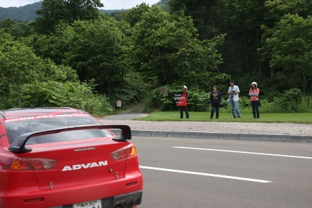 −−−−−−−−−−−−− 後続車が通過、助手席側のドアが開かないためコ・ドラの立久井選手はまだ車の中。
