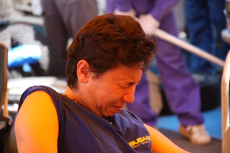 −−−−−−−−−− 勝田選手に異変? ではなく足立選手のやさしい足のツボマッサージ。・・・というイジメ?