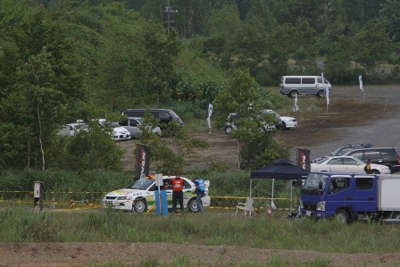 到着してすぐにラリーカーも到着。撮影場所をスタート直後のコーナーに決めて撮影準備に取りかかる。