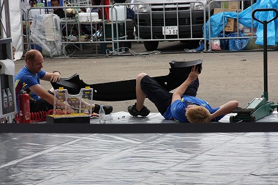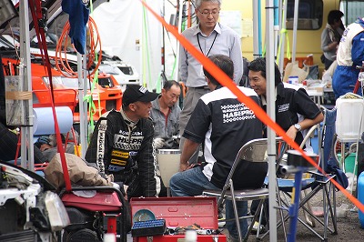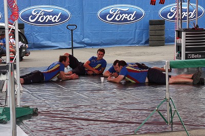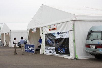 サービスの方に戻ると、どうやら福永選手リタイヤの模様。 コチラもドヨ〜ンとした空気が漂うアラモのテントです。