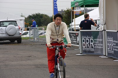 広いサービスパークをテクテク歩いている我々に、自転車は羨望の的。